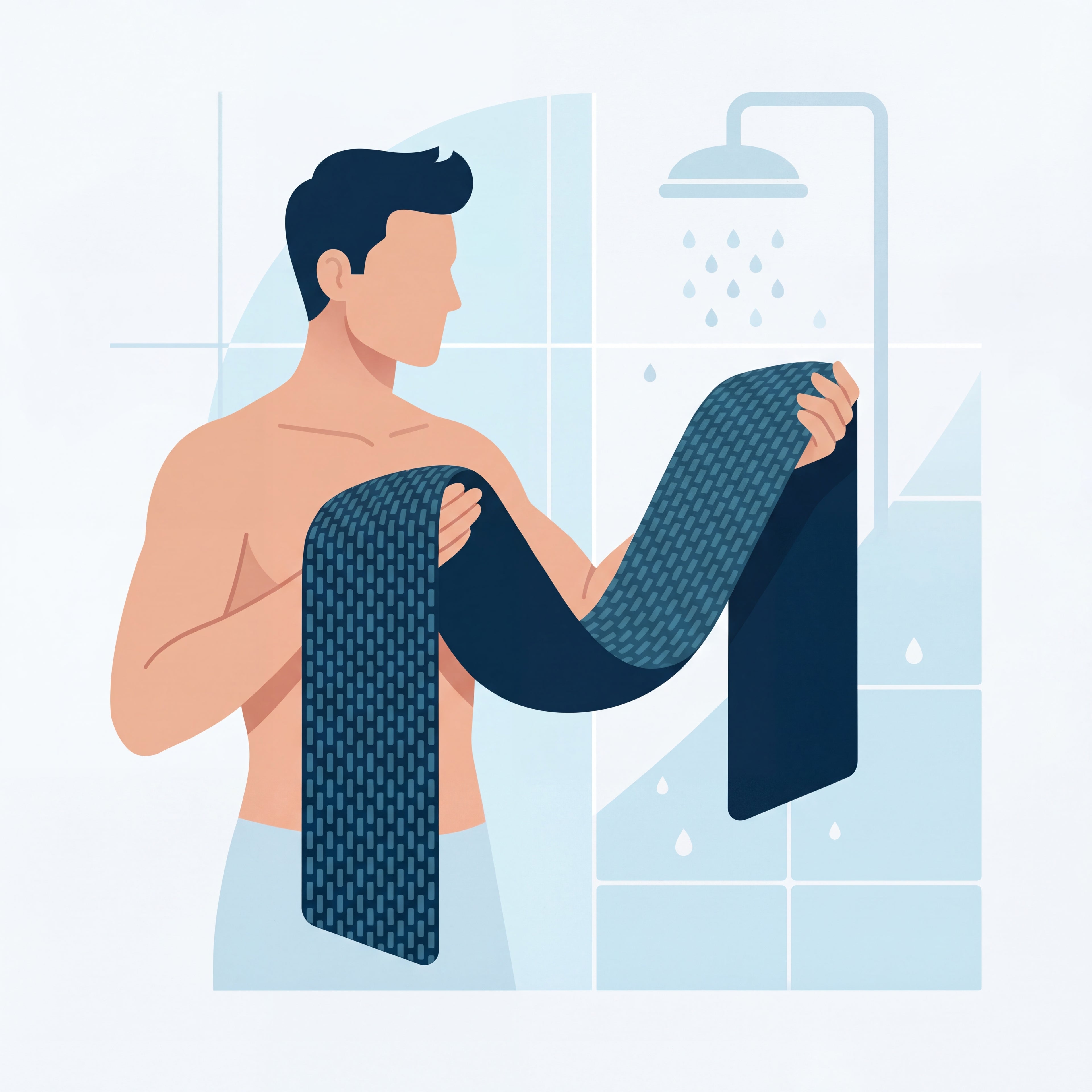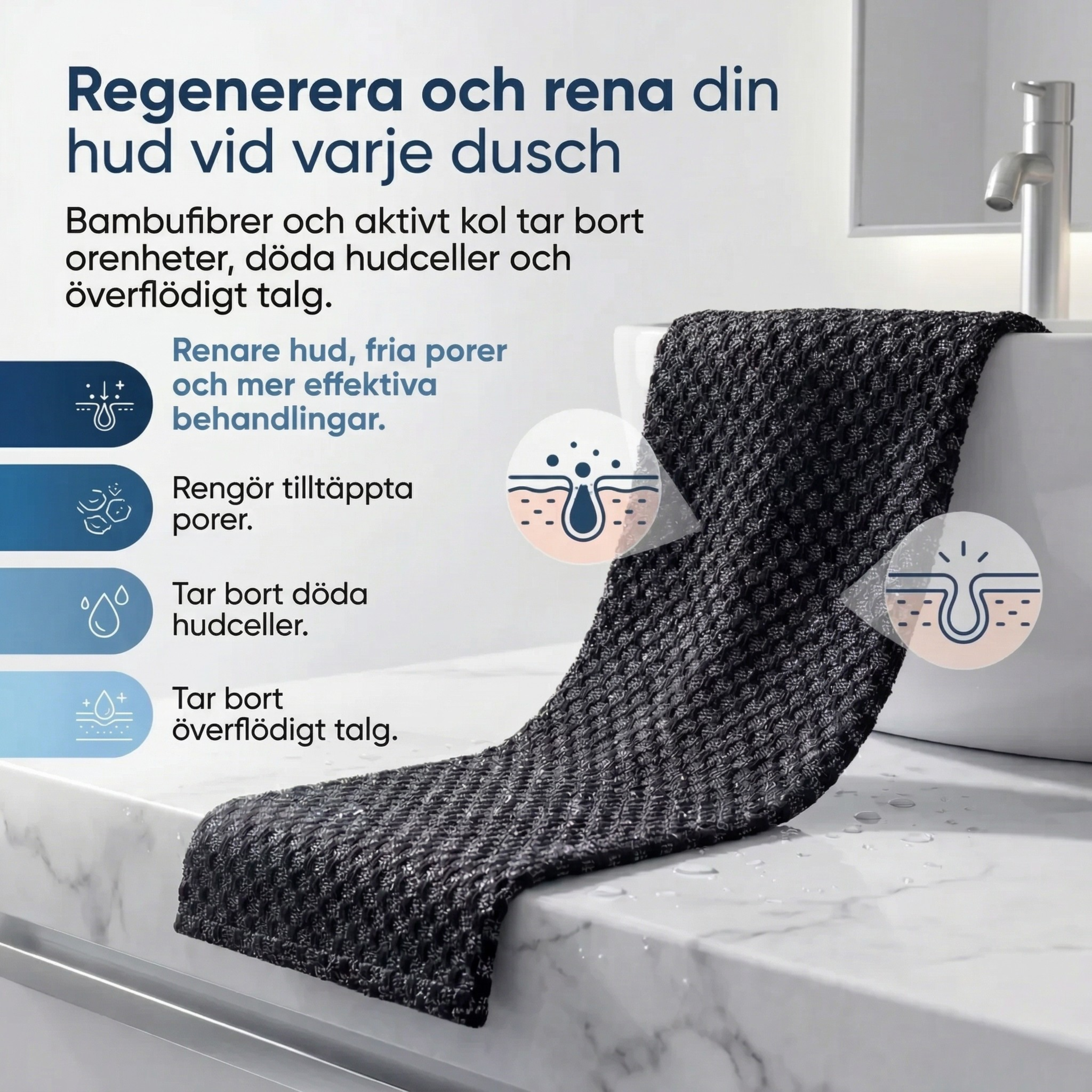 För att upprätthålla optimal hygien och maximal exfolieringseffekt rekommenderar vi att byta ut handduken var 60–90 dag, beroende på användningsfrekvens.